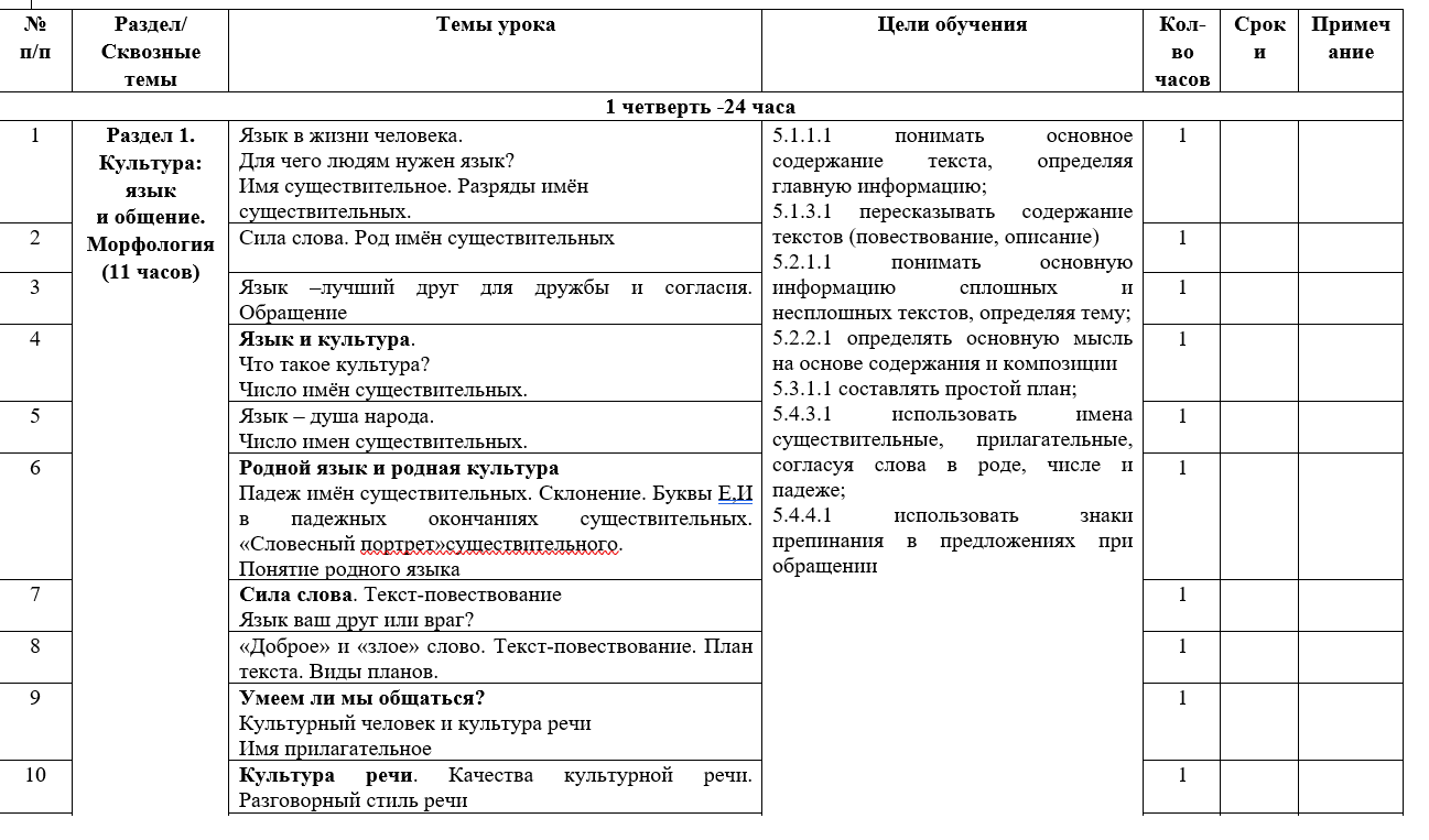 Календарные и поурочные планы по русскому языку для 5 класса на 2025–2026 учебный год для школ с русским языком обучения— это полный комплект материалов, включающий 1–4 четверти. Учителю остаётся лишь использовать готовые разработки для проведения уроков и подготовки учеников.